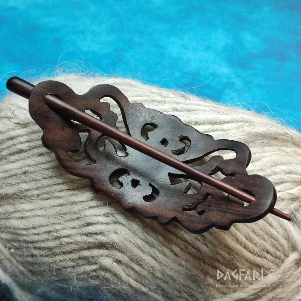 RÓS Dřevěná oblouková ,,D" spona do vlasů, s jehlicí skrz drdol
