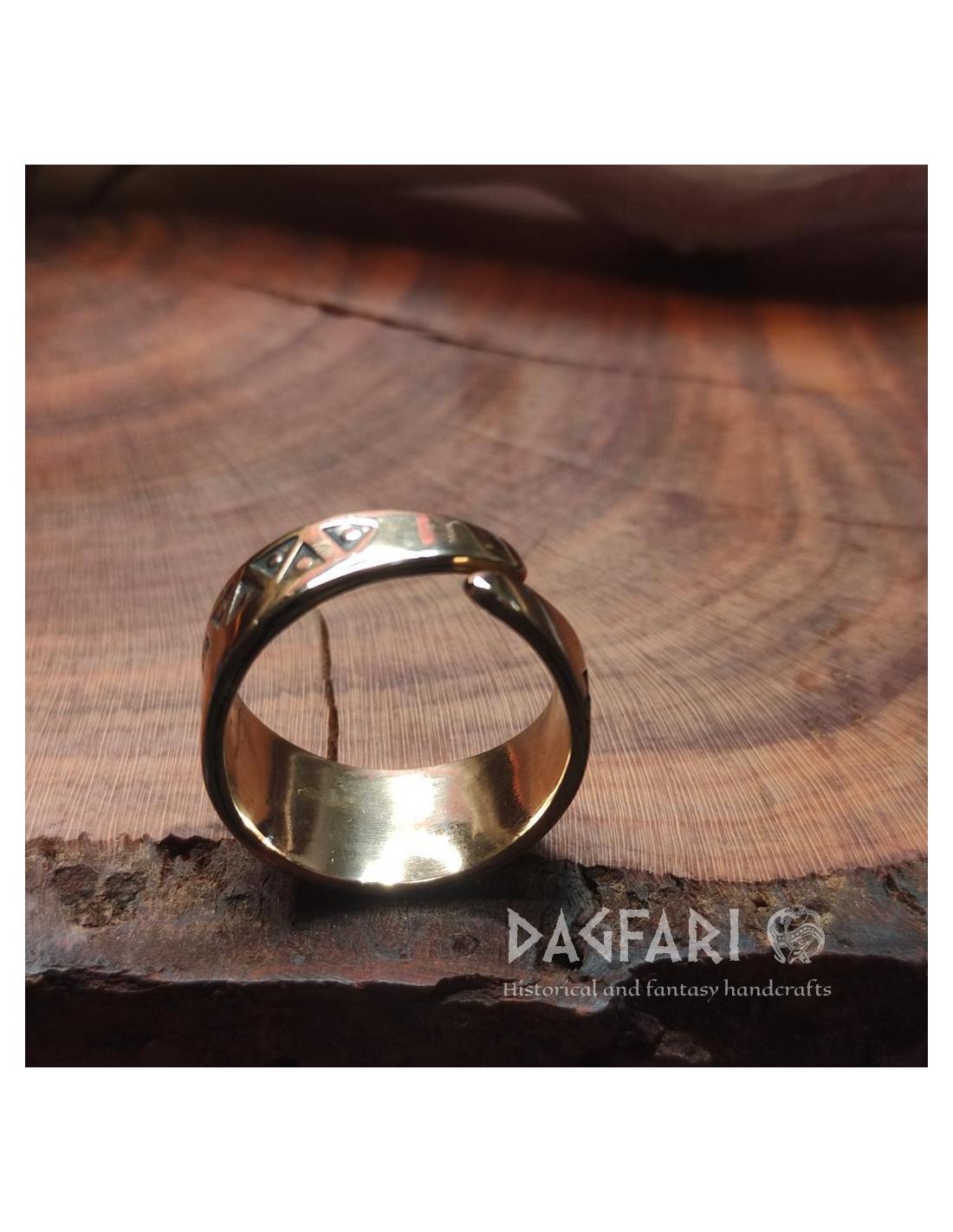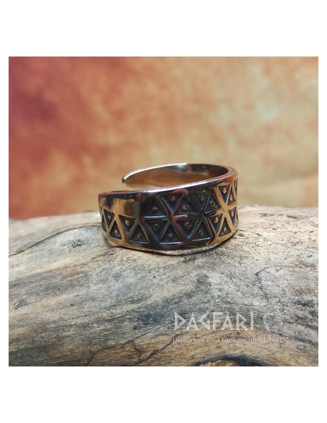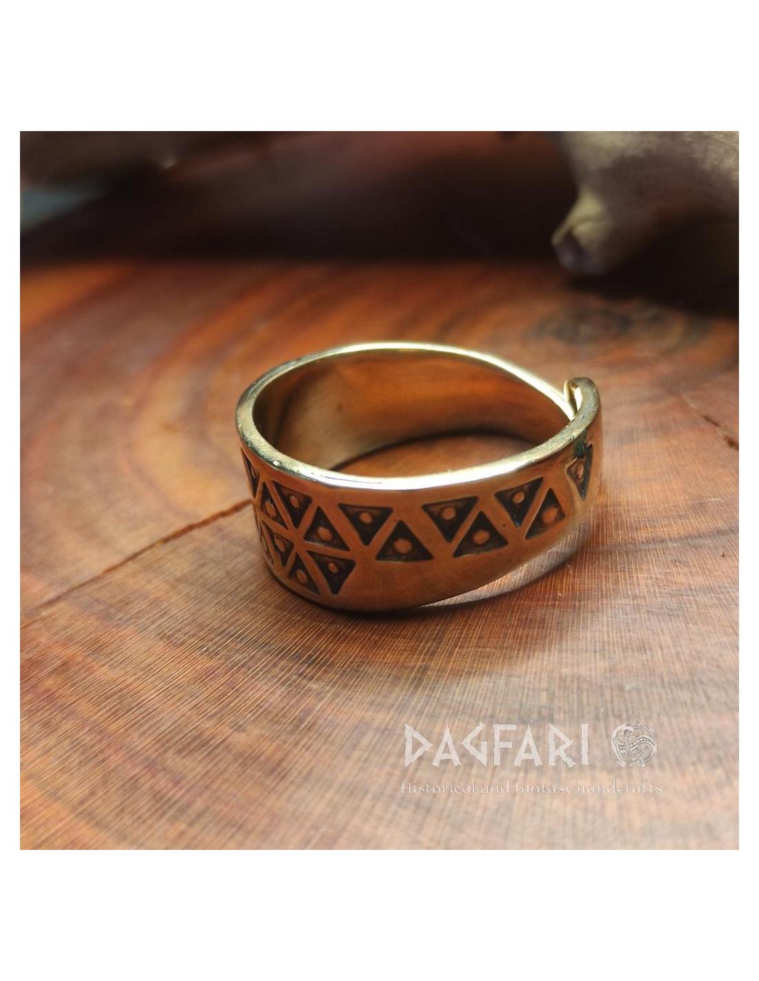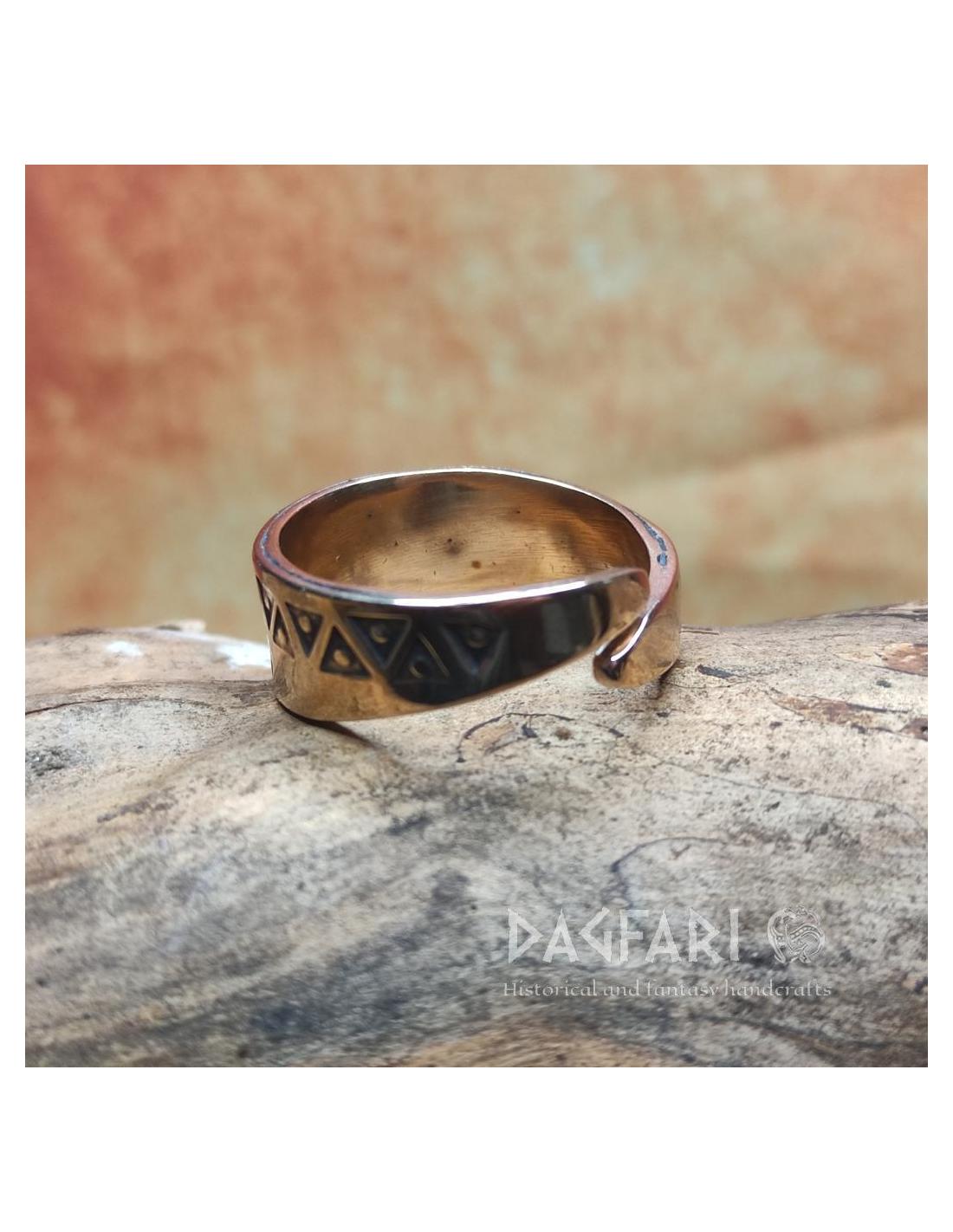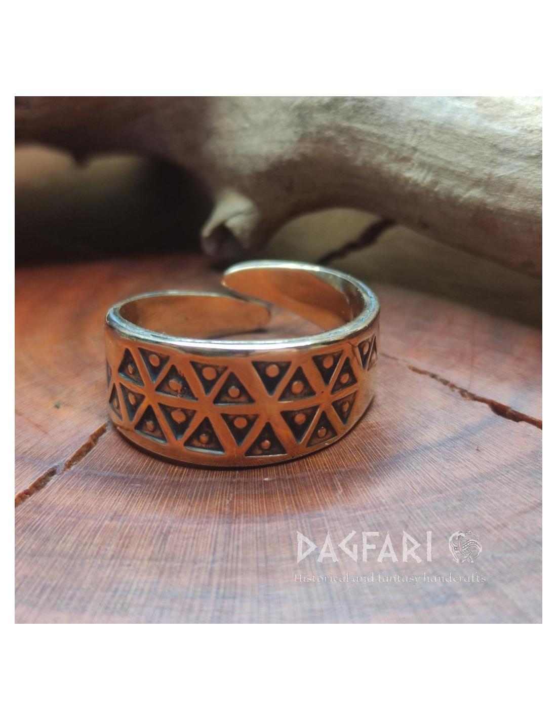 Jeden z mnoha prstenů s raženými trojúhelníky ve stylu Valknutu z Gotlandu (Švédsko).