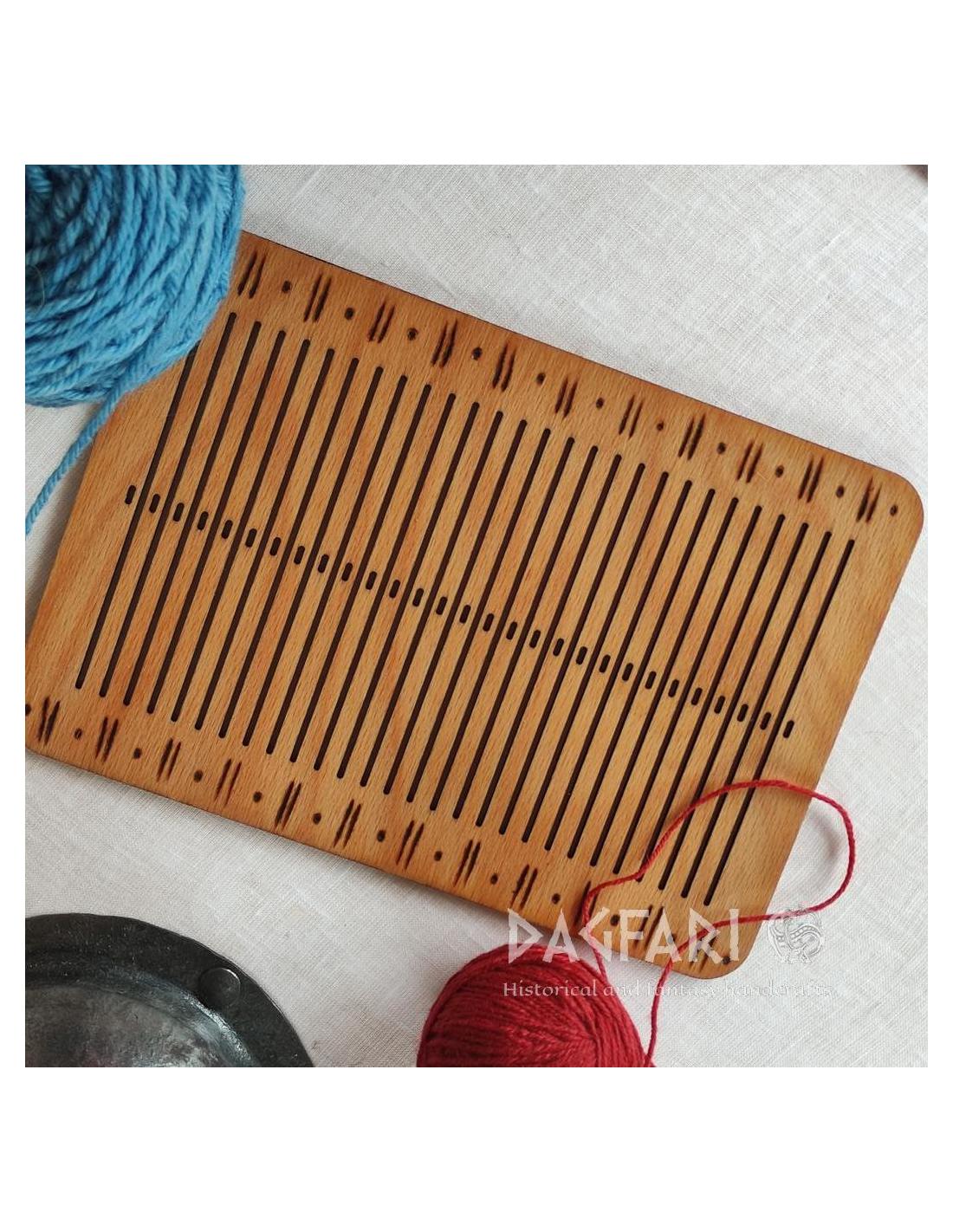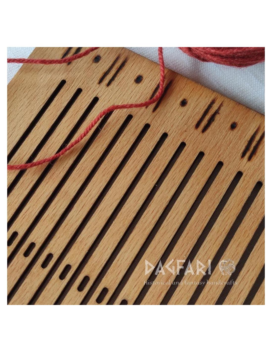 Celkem 57 dírek pro přízi - dřevěná deska pro výrobu historické i moderní tkanice hřebenovky - stuhy z příze, vlny.