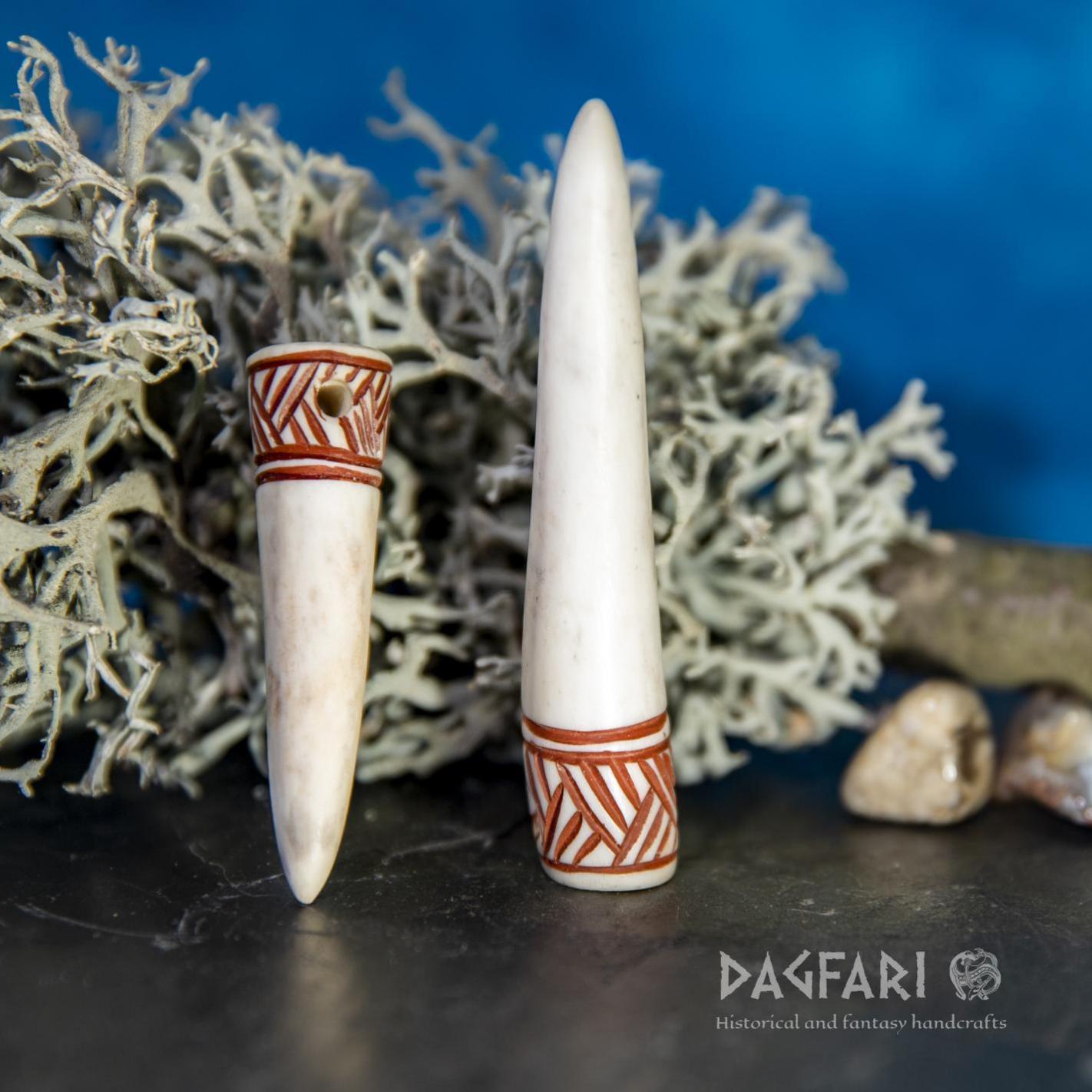 Standardně vyrábím špičky ve dvou velikostech a skvěle doplní například parohové náušnice či další šperky které z paroží vyrábím - kompletní sortiment naleznete zde na e-shopu.