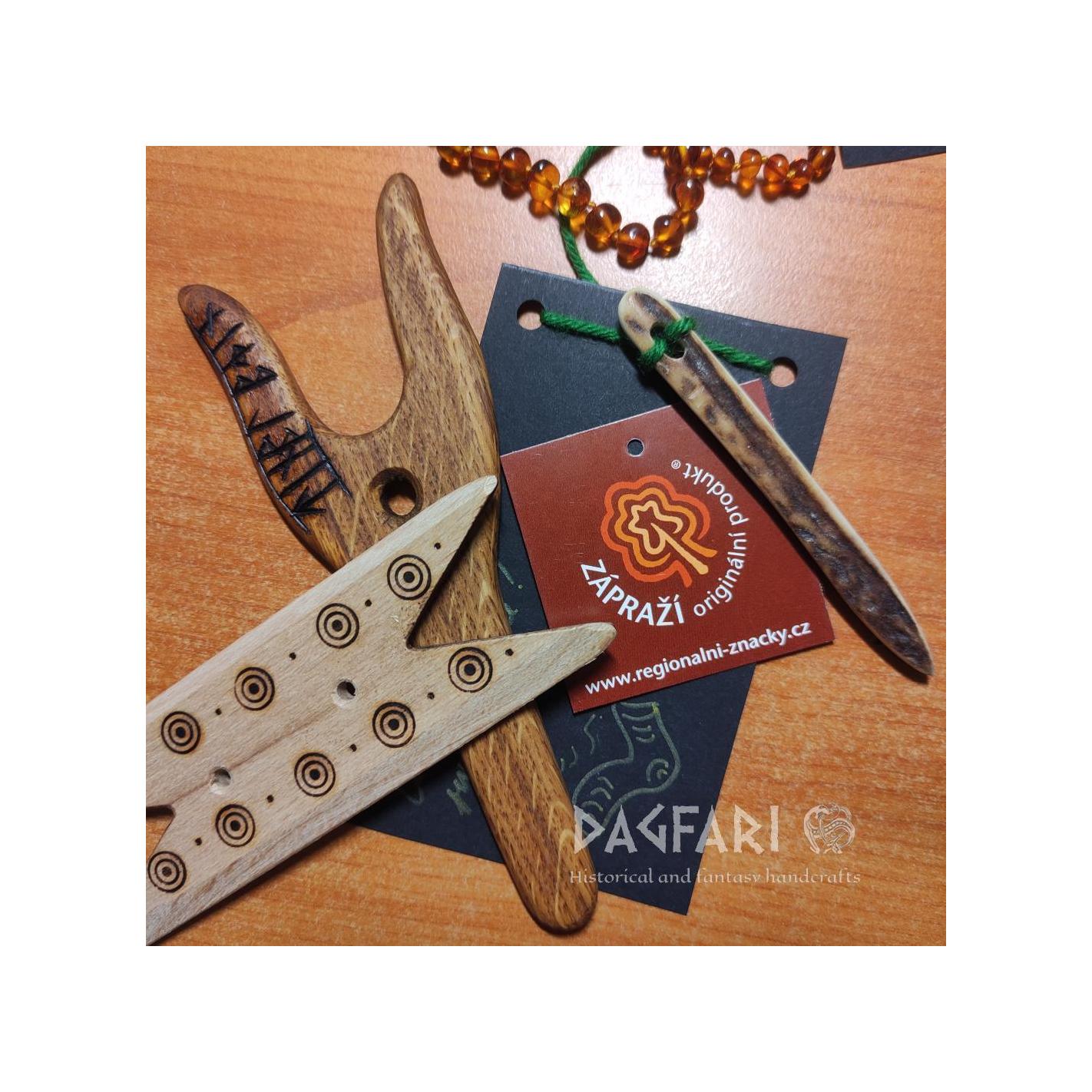 Dřevěný tkalcovský člunek - pomůcka ke tkaní karetkových a hřebenových pásků, pletení sítí atd.