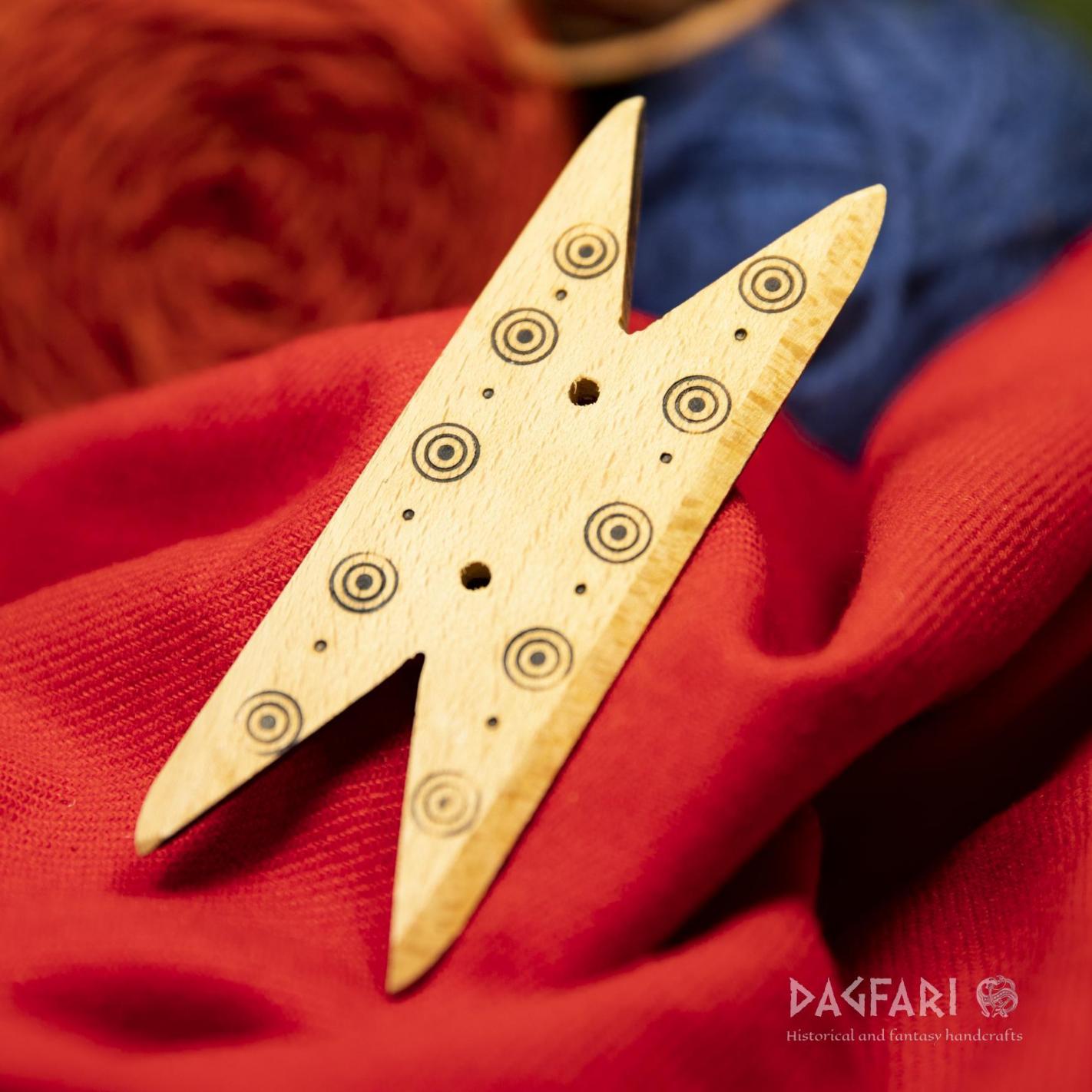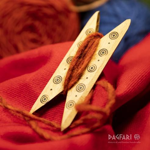 Ručně vyrobený a originálně zdobený člunek pro namotání příze, vyrobený z bukového dřeva.