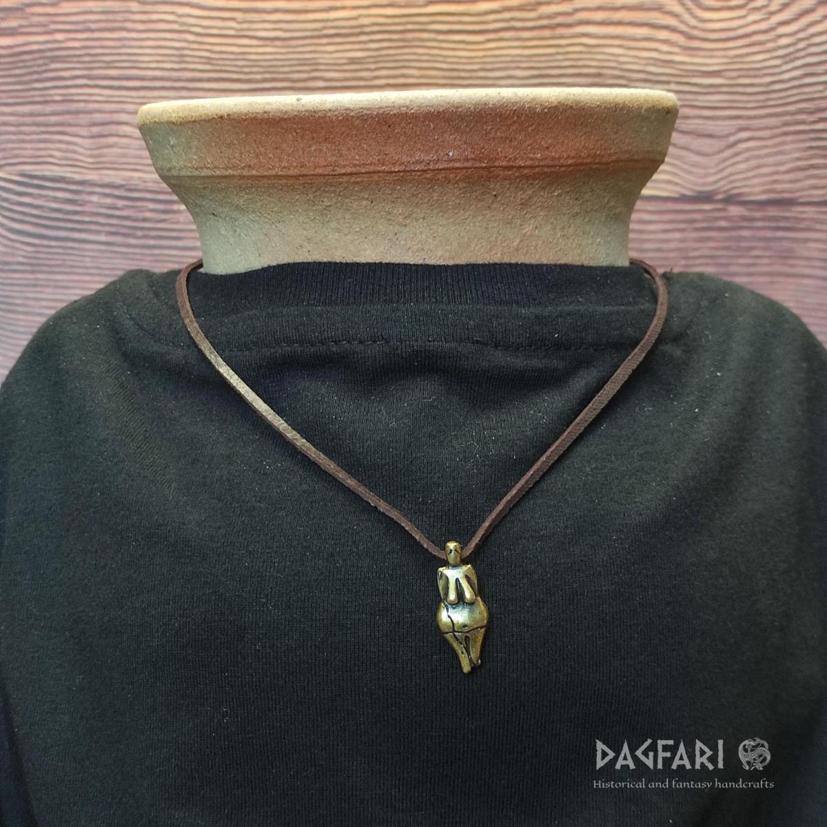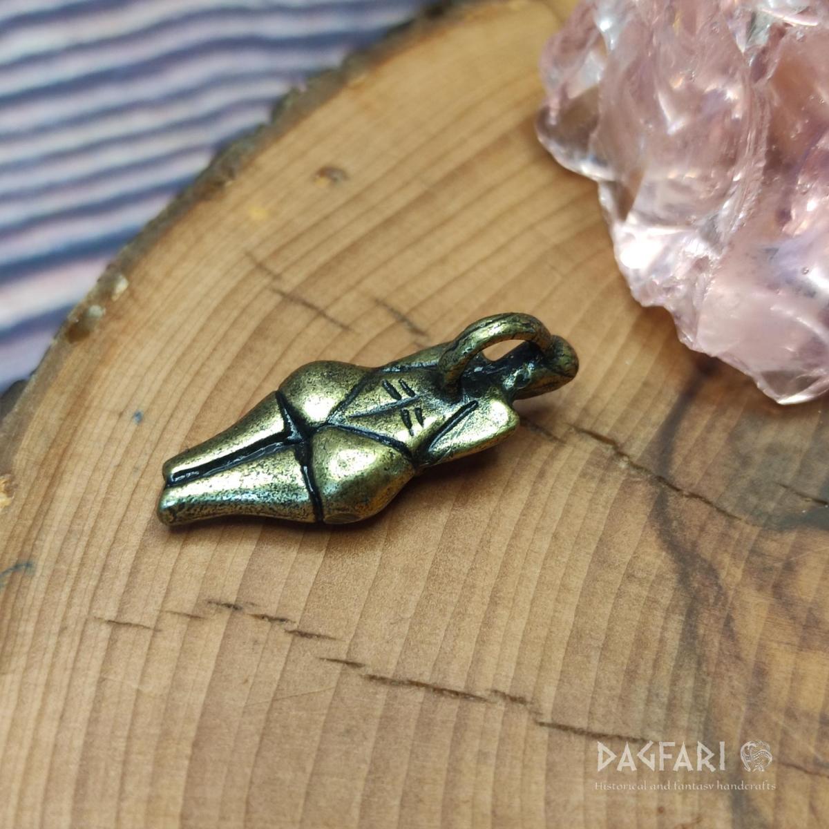 Unser Modell ist verkleinert, mit hervorgehobenen Details, und in Bronze gegossen. Sie werden keine unbekannten Details finden, die auf einem so kleinen Anhänger nicht sichtbar wären - ein Fingerabdruck eines Kindes auf dem Hintern oder Löcher im Kopf, in die man... was wissen wir, Federn? Haare? Aber es strotzt vor Andeutungen von Phallus auf dem Bauch und dem Rücken, vergisst nicht eine größere Brust, wie beim Original, und überrascht mit einer versteckten Öse zum Aufhängen, so dass Sie ein angenehmes Gefühl mit der Symbolik der inneren weiblichen Stärke und des Respekts für die Mutter, die Göttin, genießen können!