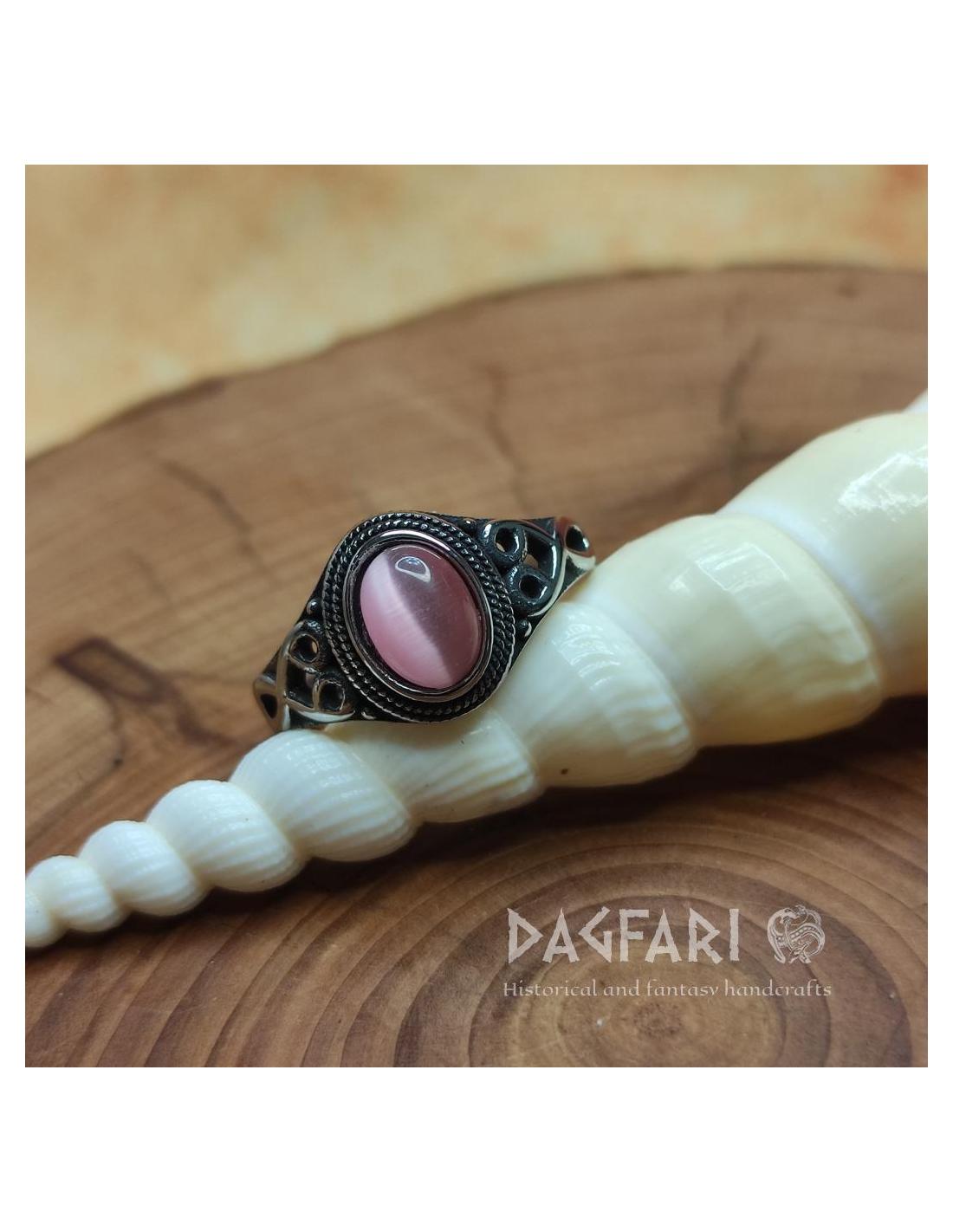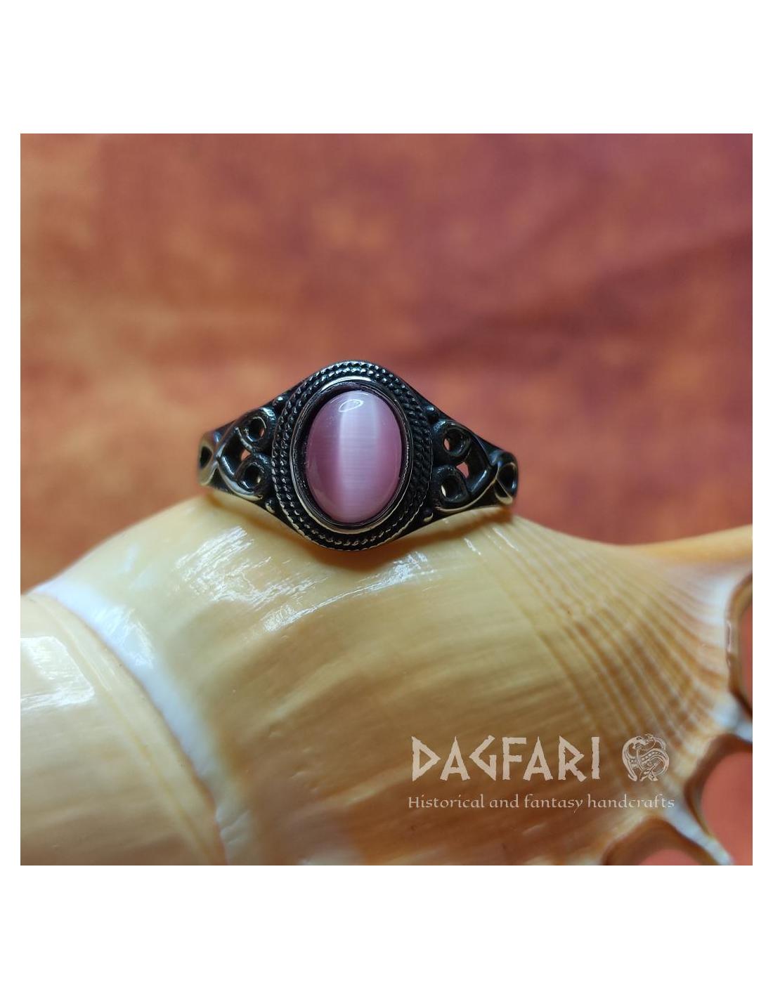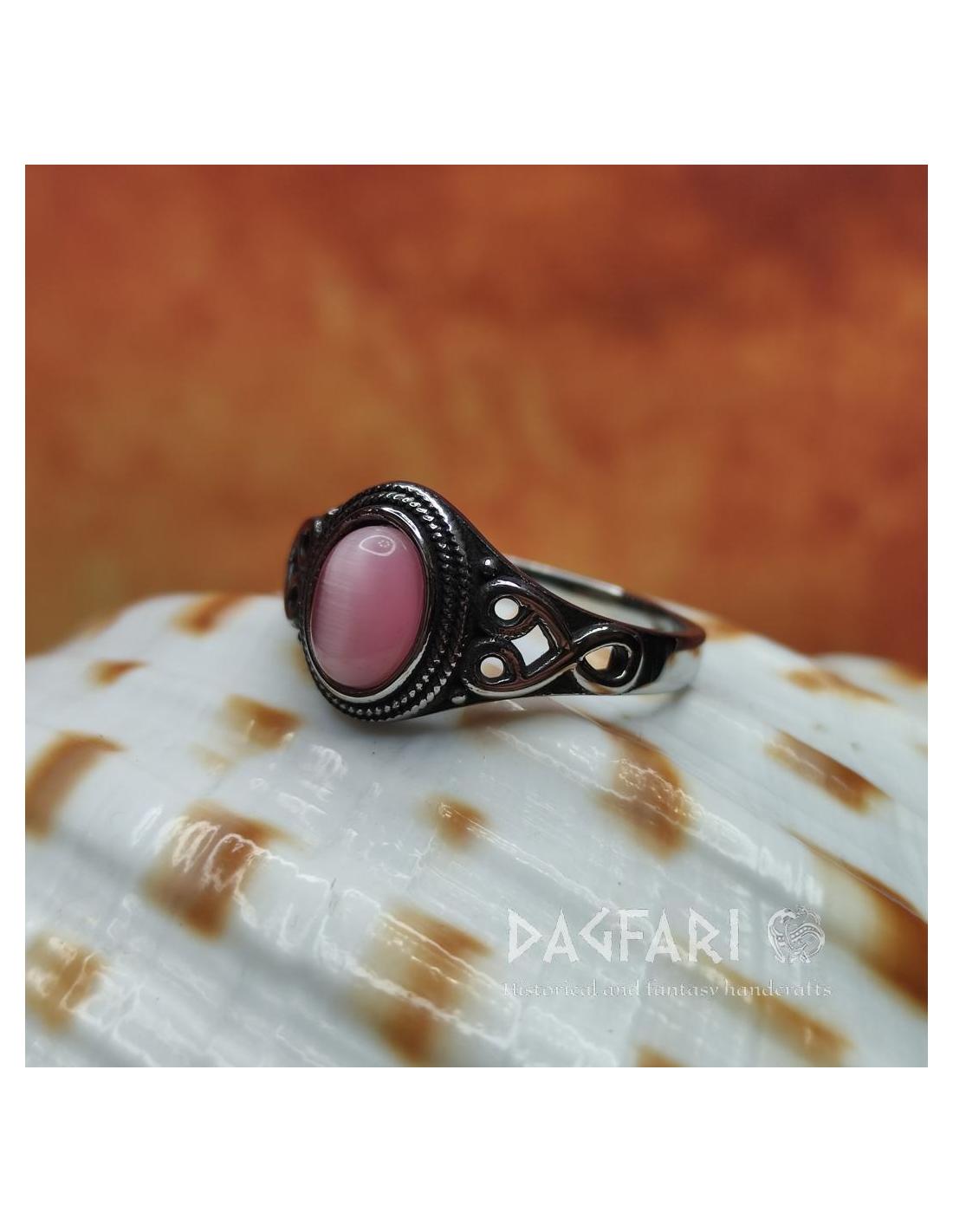 Feiner Edelstahlring – JUGENDSTIL-HERZ mit rosa Cabochon