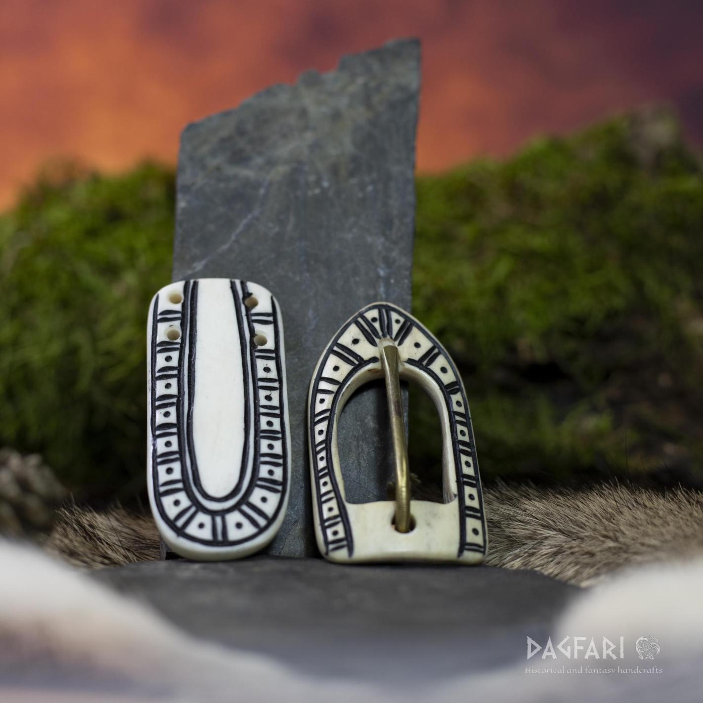 Not every fitting had to be metal. We know of buckles made from organic materials such as wood, bone, antler, walrus or mammoth tusks. The fittings were often decorated in a very plain or cursory way, with various lines and familiar circles made with a compass, or, on the contrary, precisely carved with floral motifs or regular patterns.