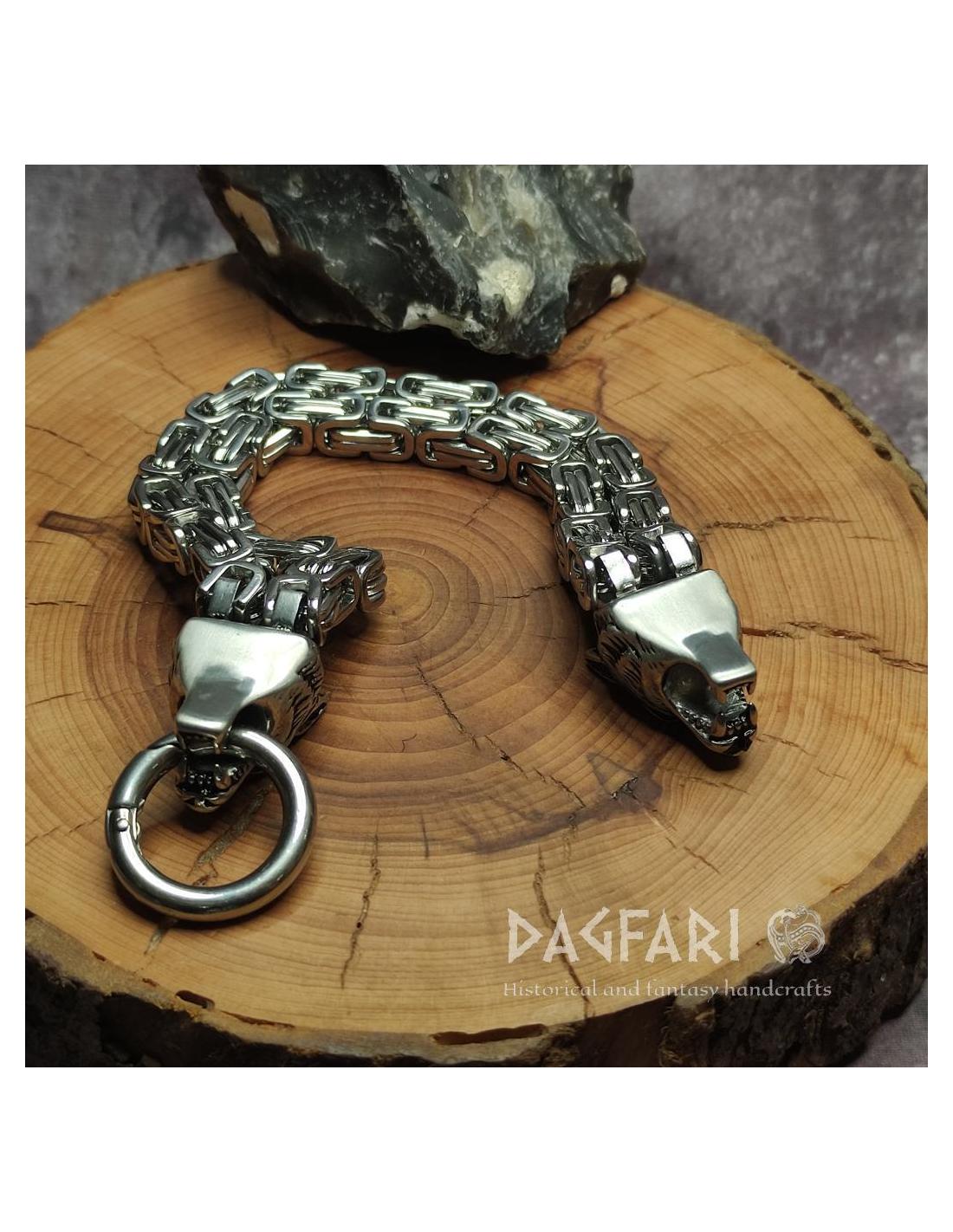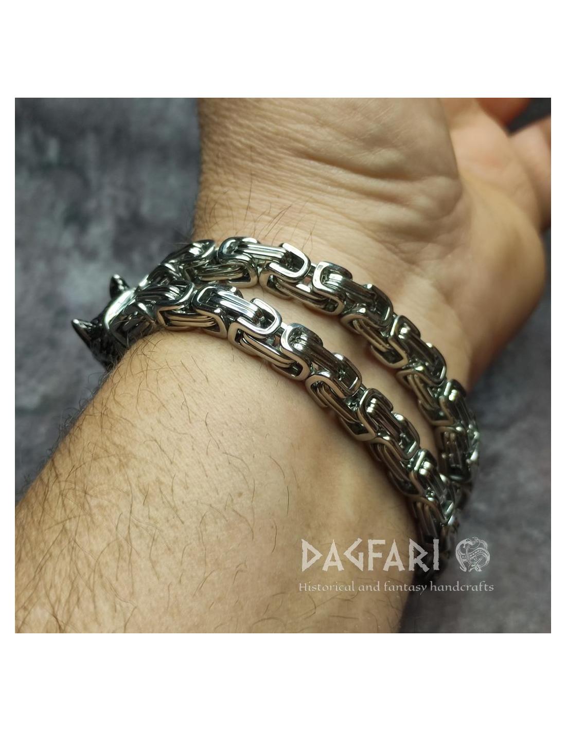 Discover the power of detail with this solid stainless steel bracelet that catches the eye at first glance. The striking design featuring intricate wolf heads symbolizes courage, strength, and independence—the ideal accessory for men who want to express their character.
